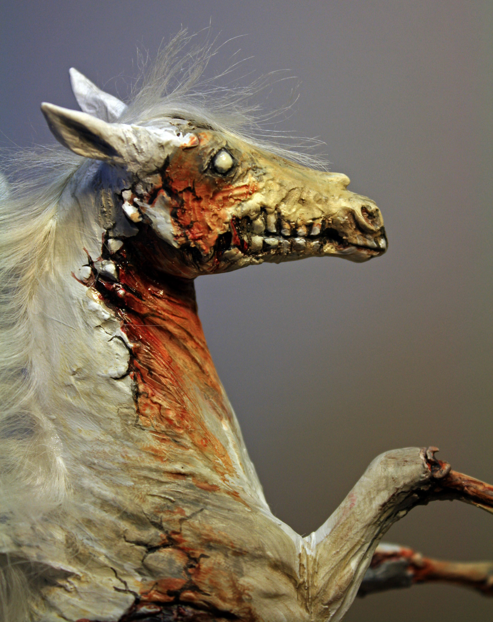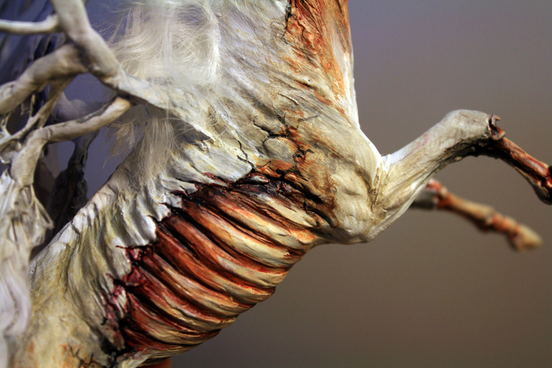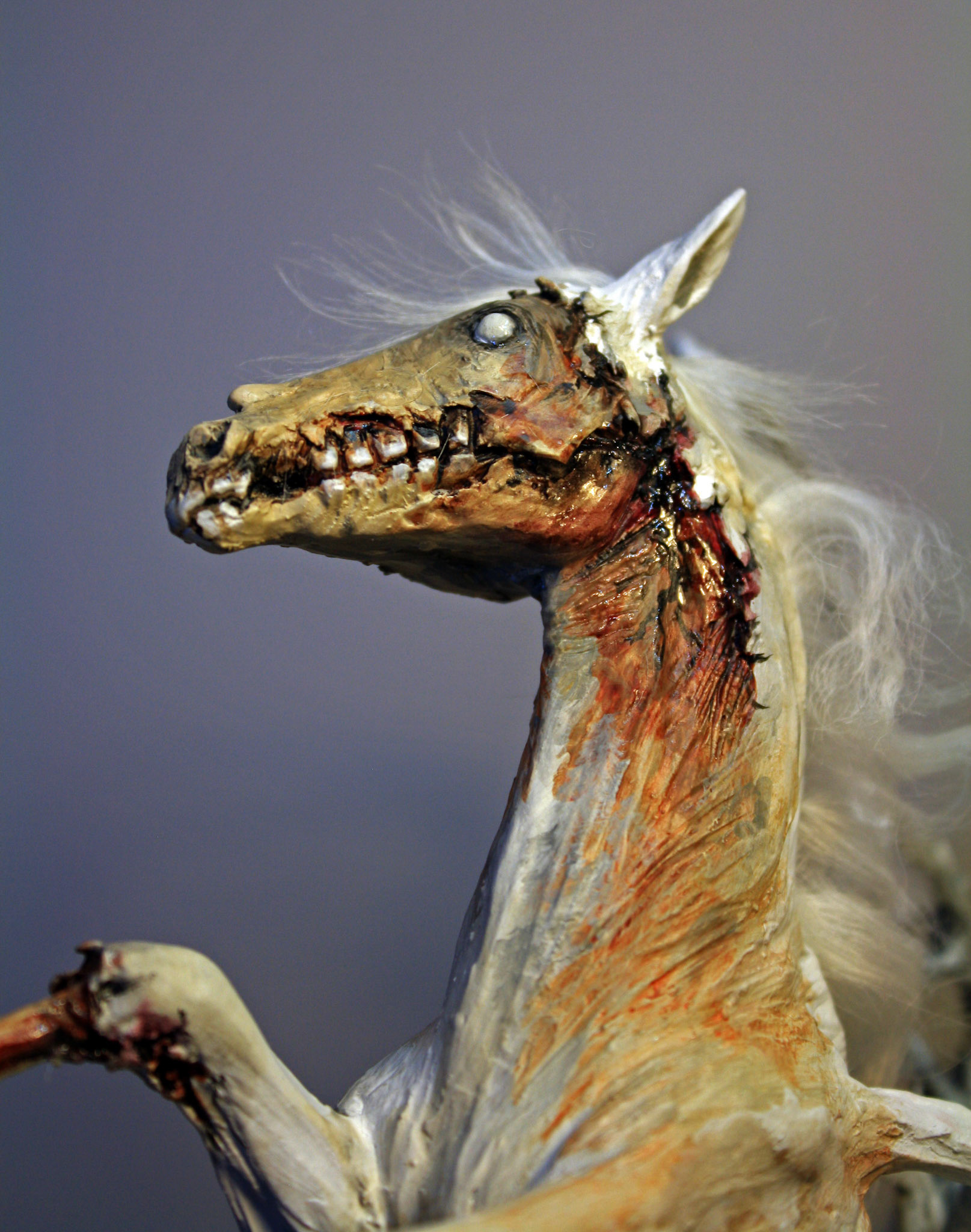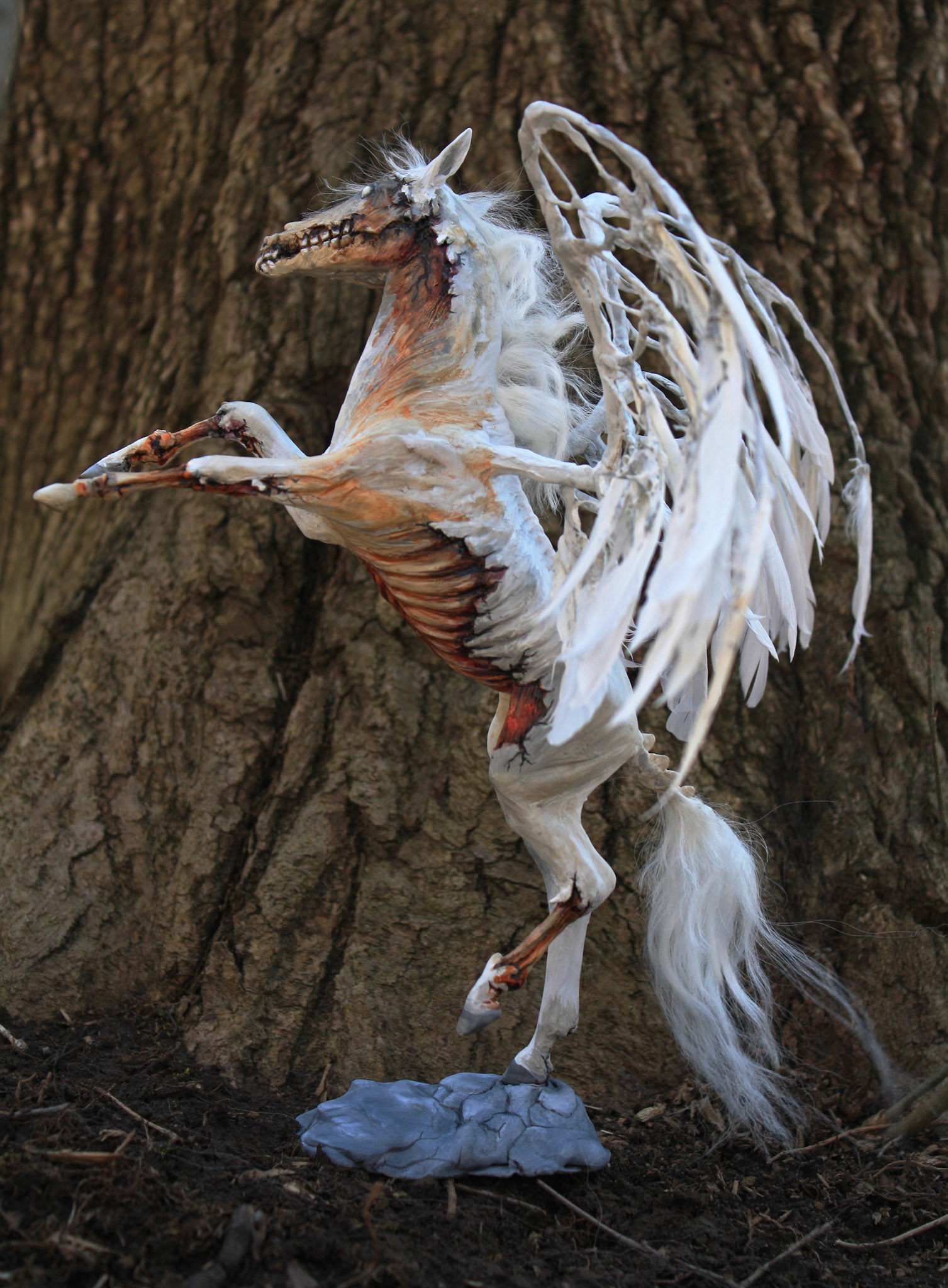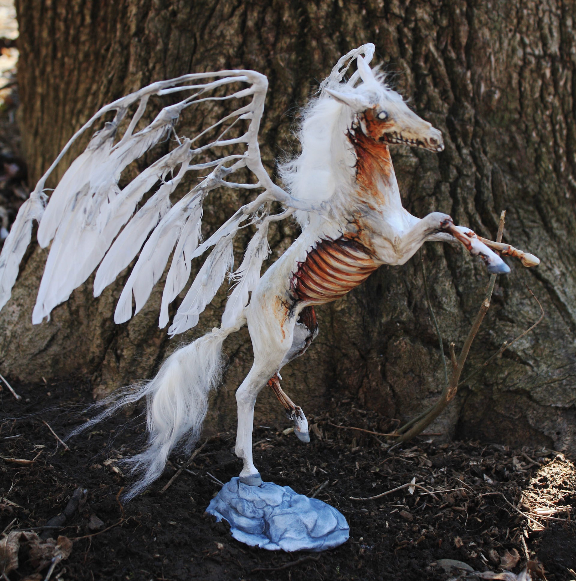Zombie pegasus sculpture, created in 2018. Made from polymer clay and epoxy putty, about 12 inches tall.