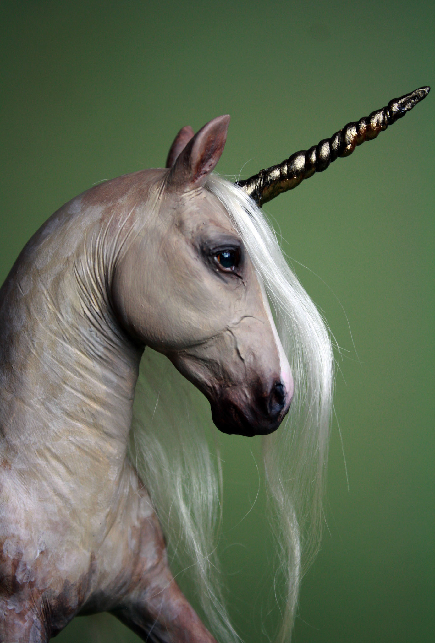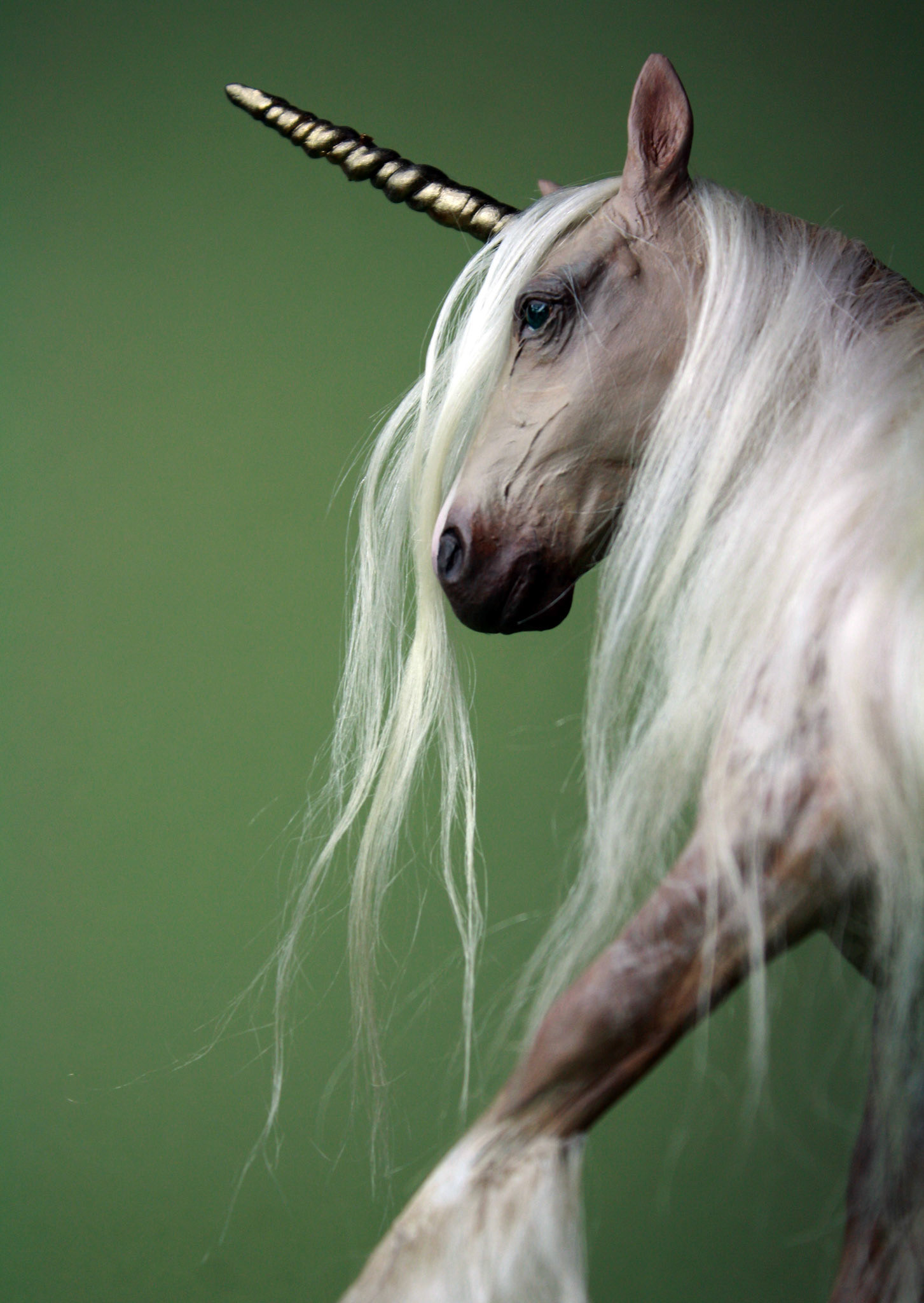 Sooty Palomino unicorn pony sculpture, created in 2016. About 5 inches tall, made from polymer clay and acrylics. Sold.