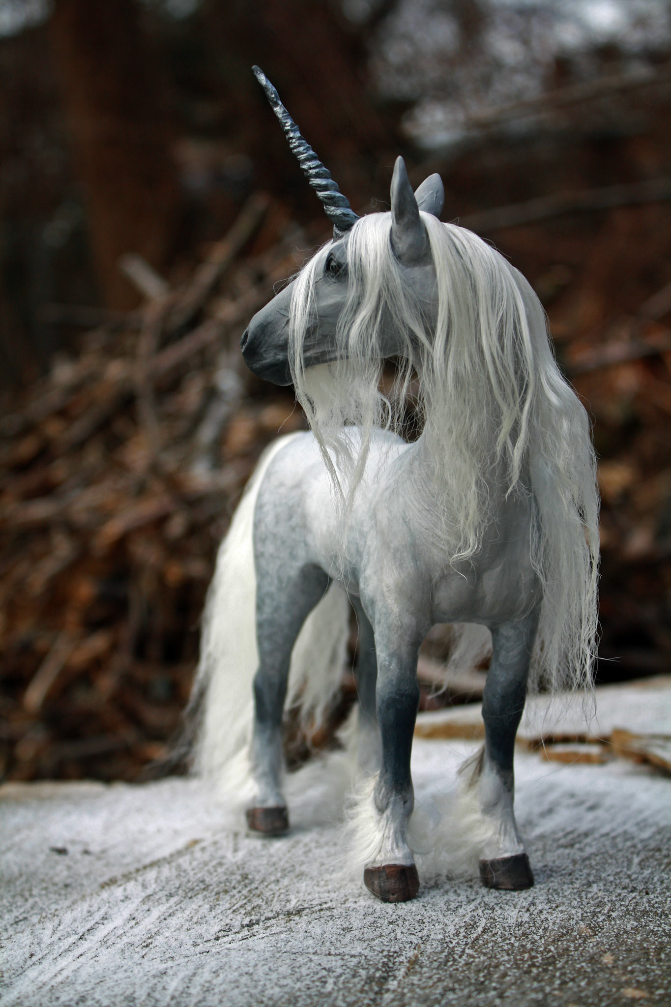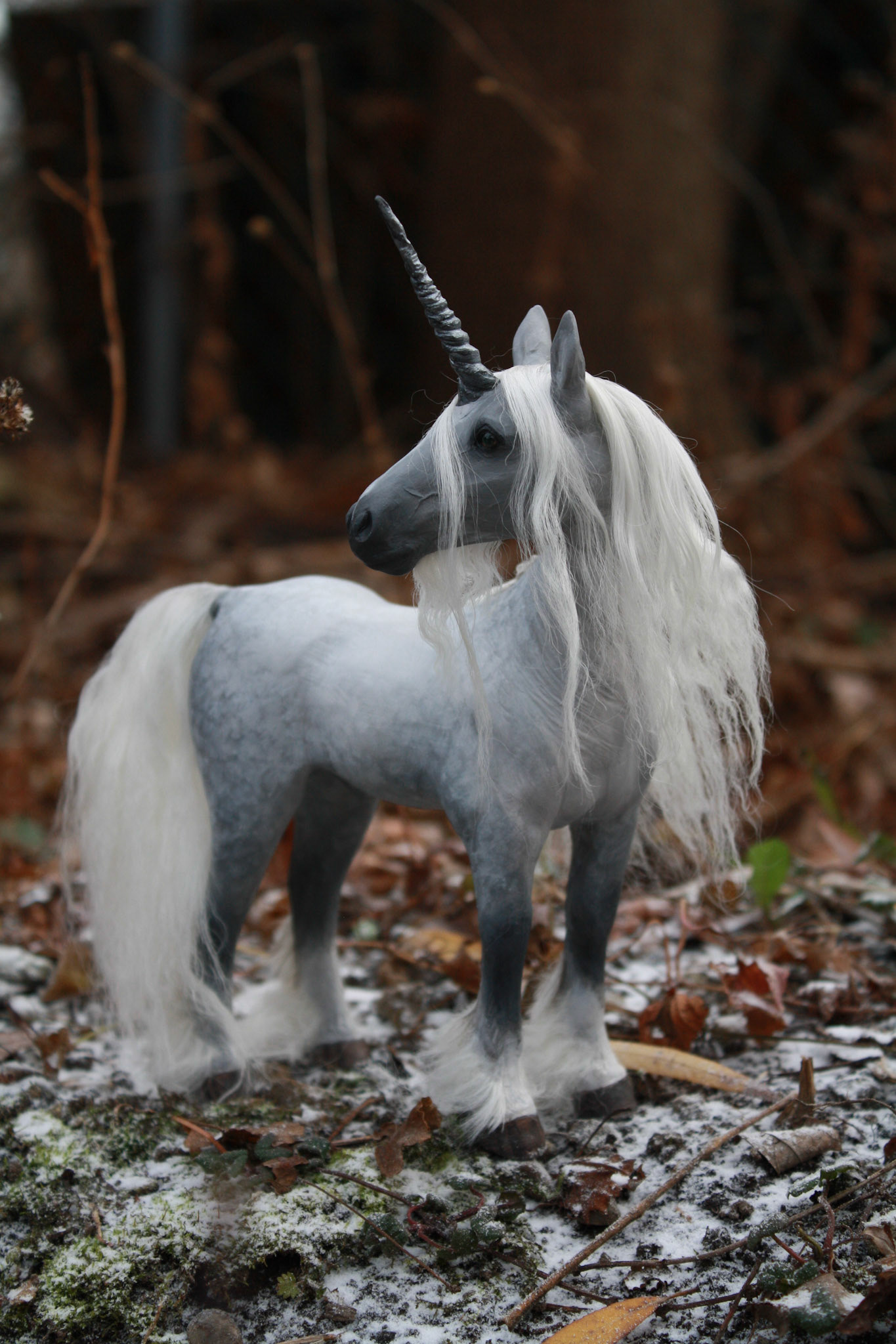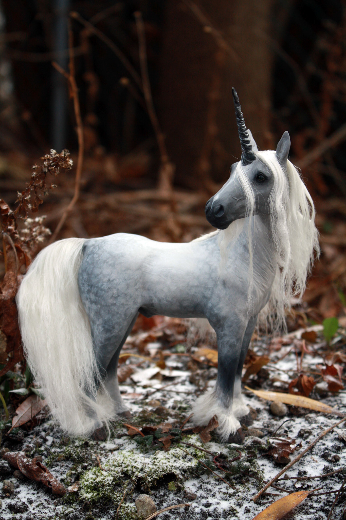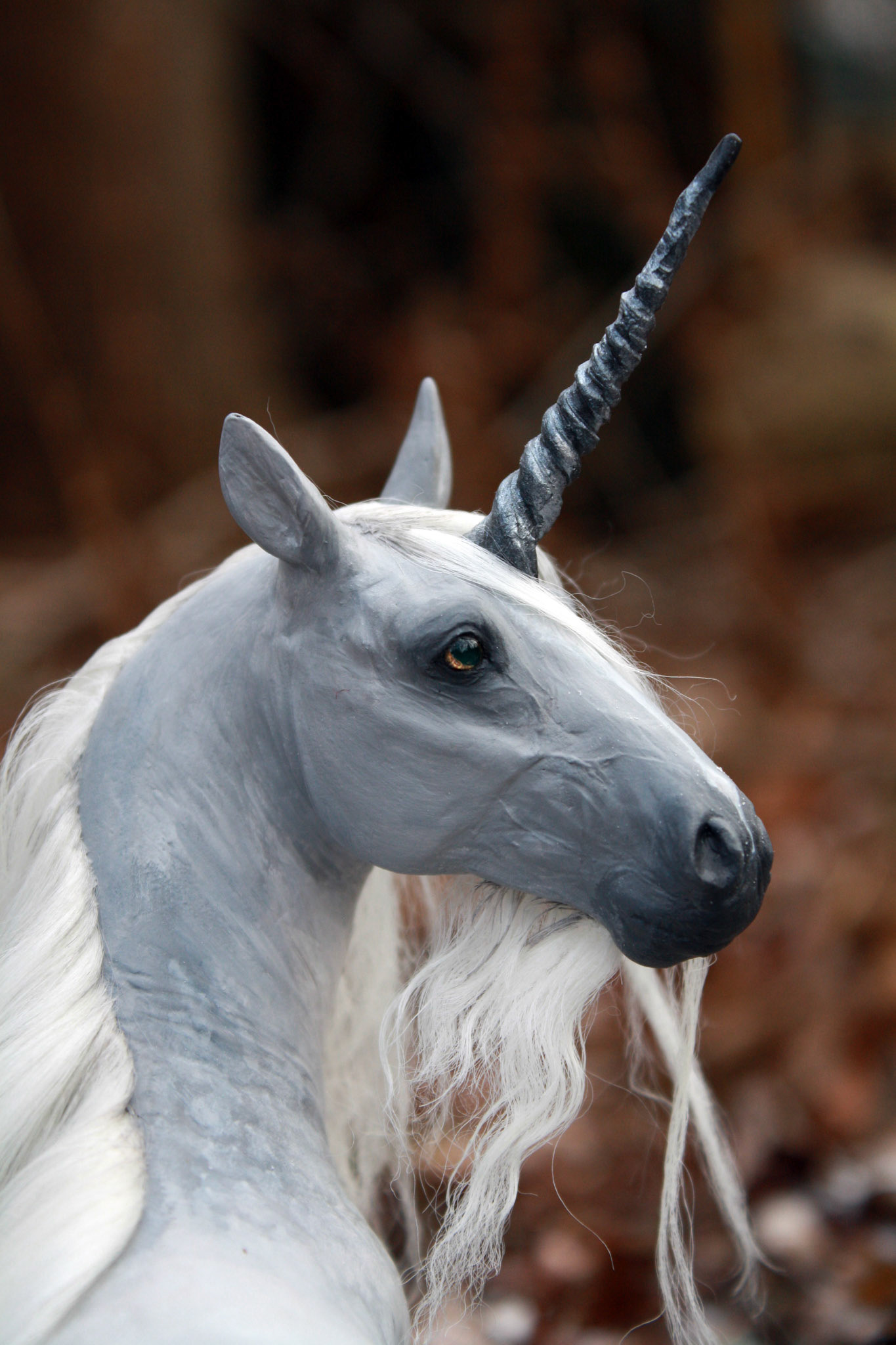 Dappled unicorn sculpture, created in 2015. Polymer clay and acrylics. About 7.5 inches tall. Sold.