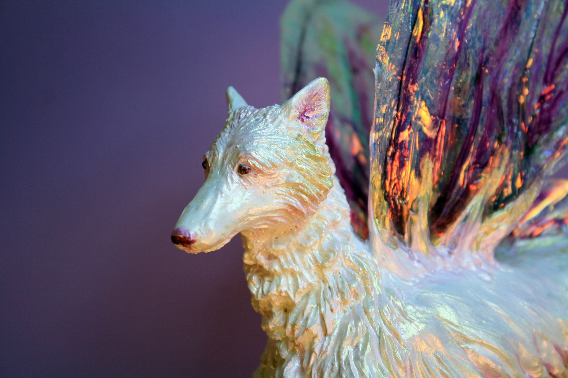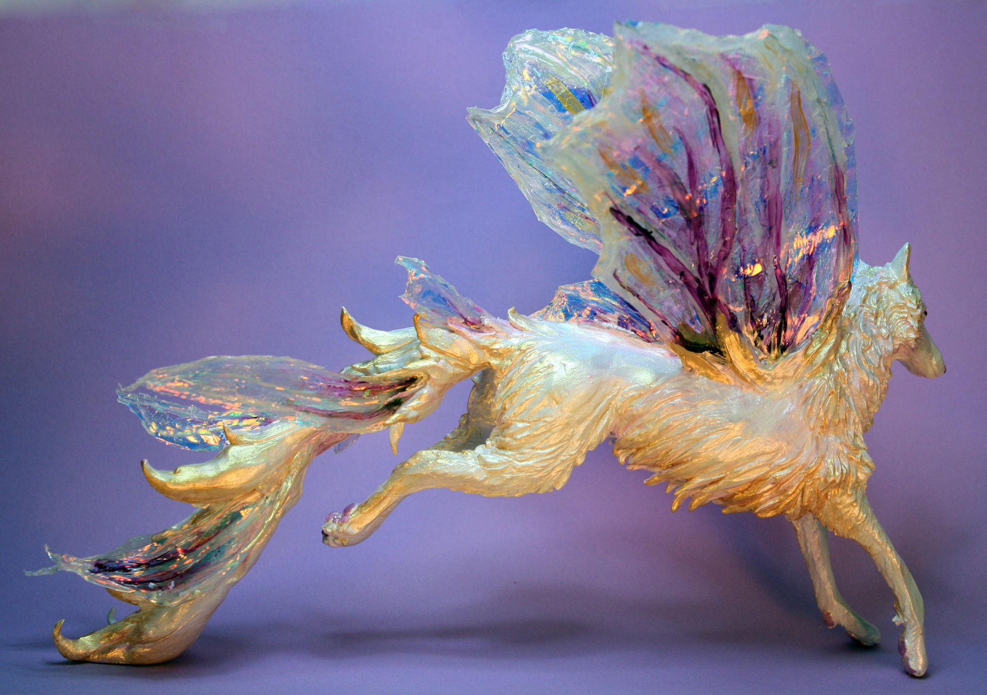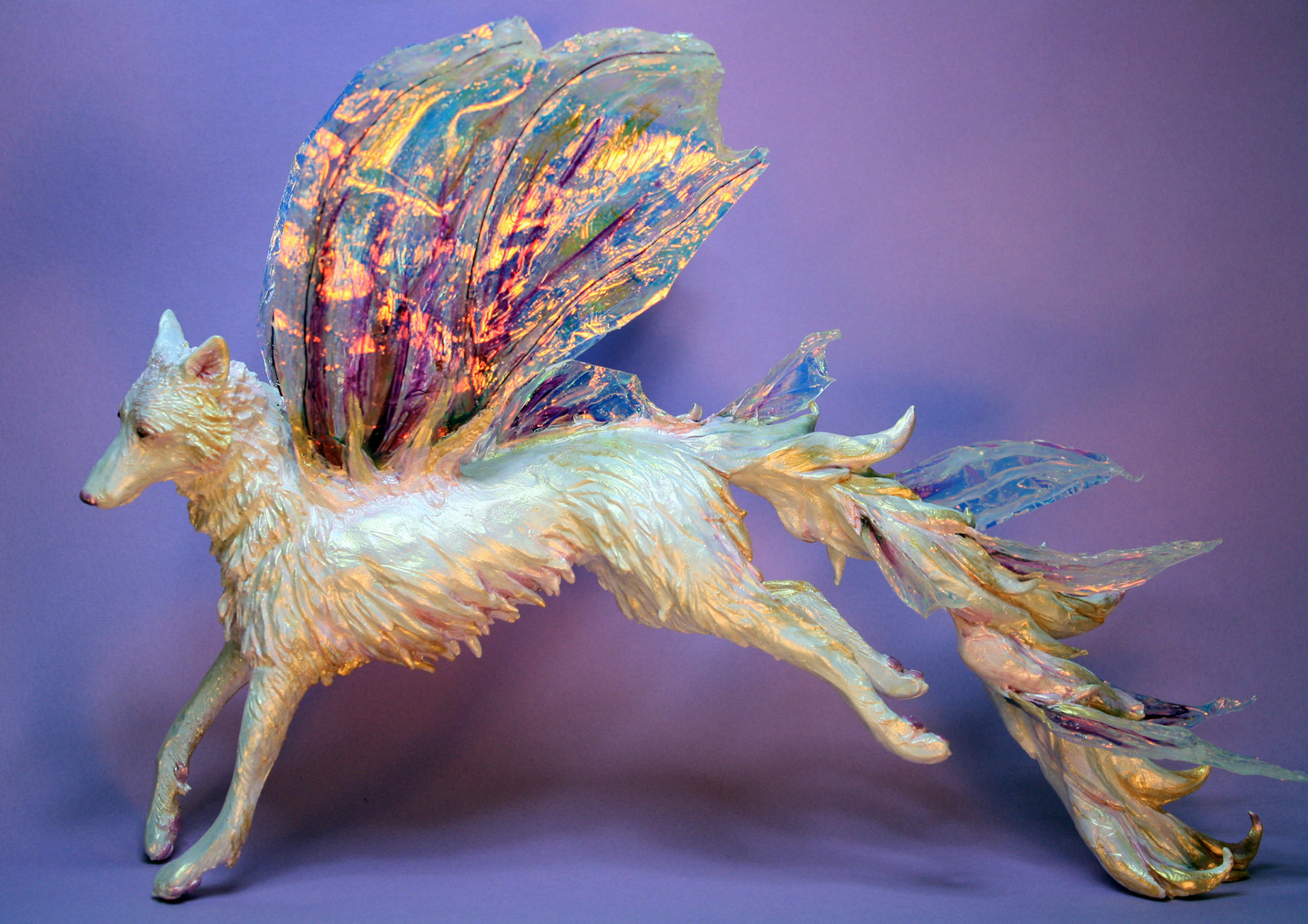 "Bisclavret" fairy wolf sculpture made from polymer clay and fantasy film. Created in 2014. Sold.