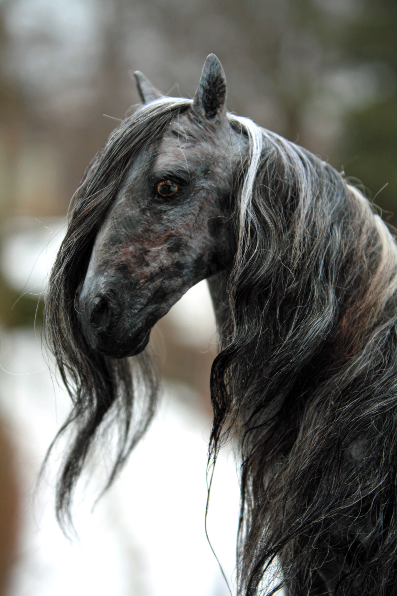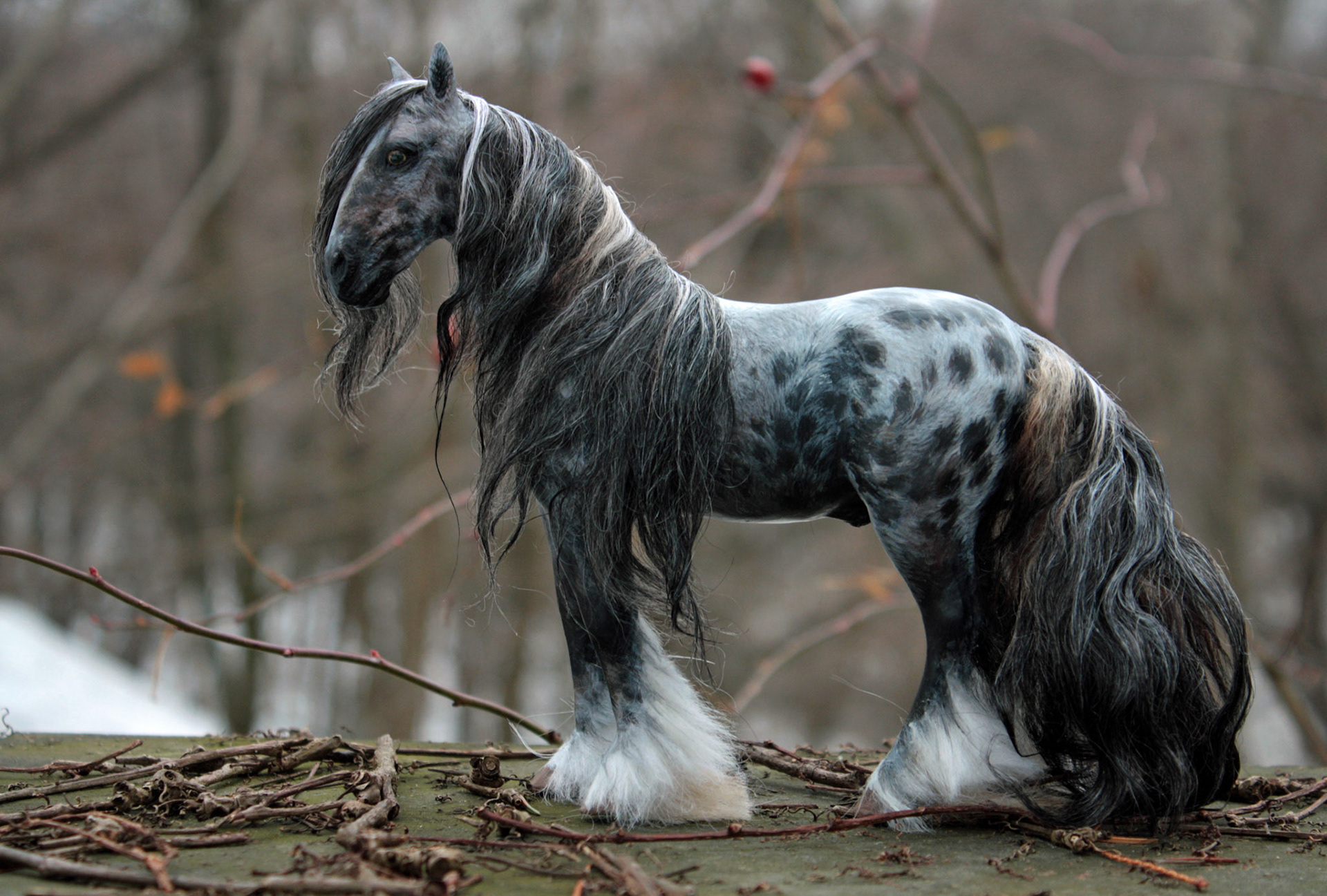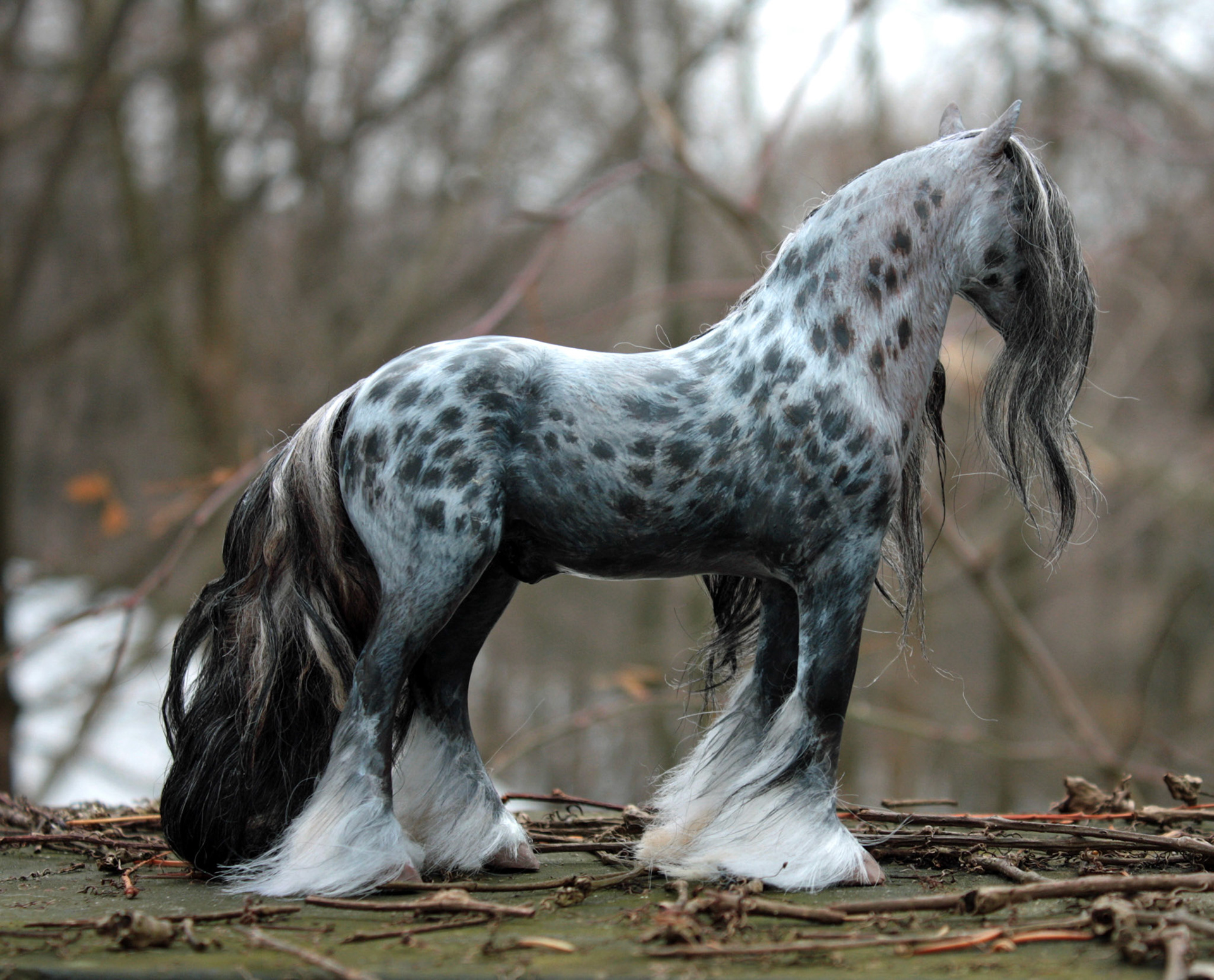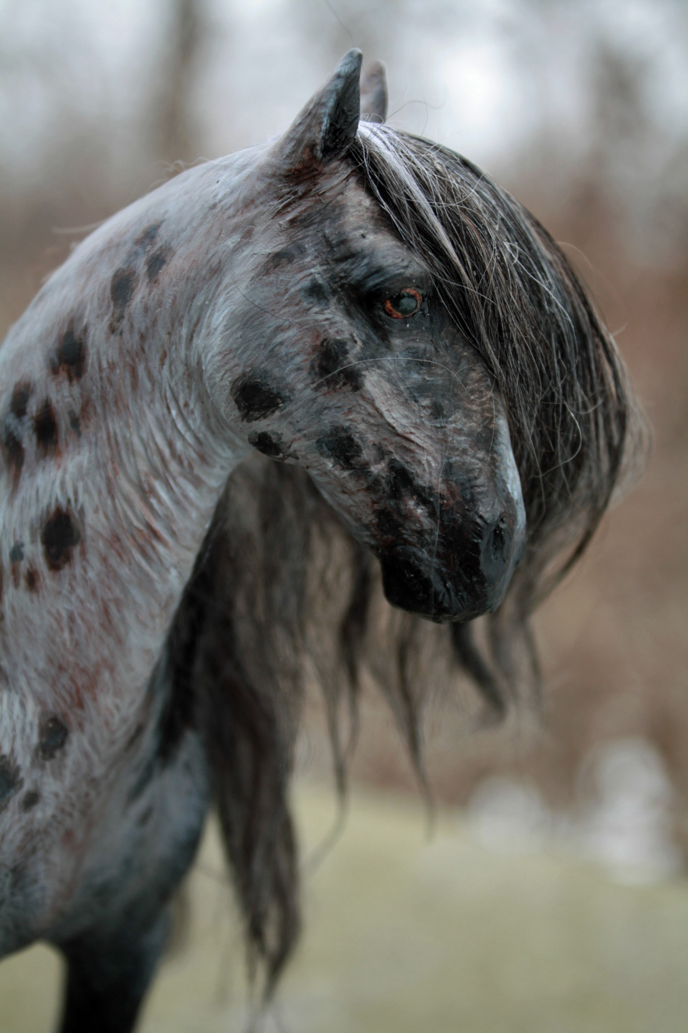 Appaloosa draft cross horse sculpture created in 2014. Made from polymer clay and painted in acrylics. Approximately 5" tall 7" long. Sold.