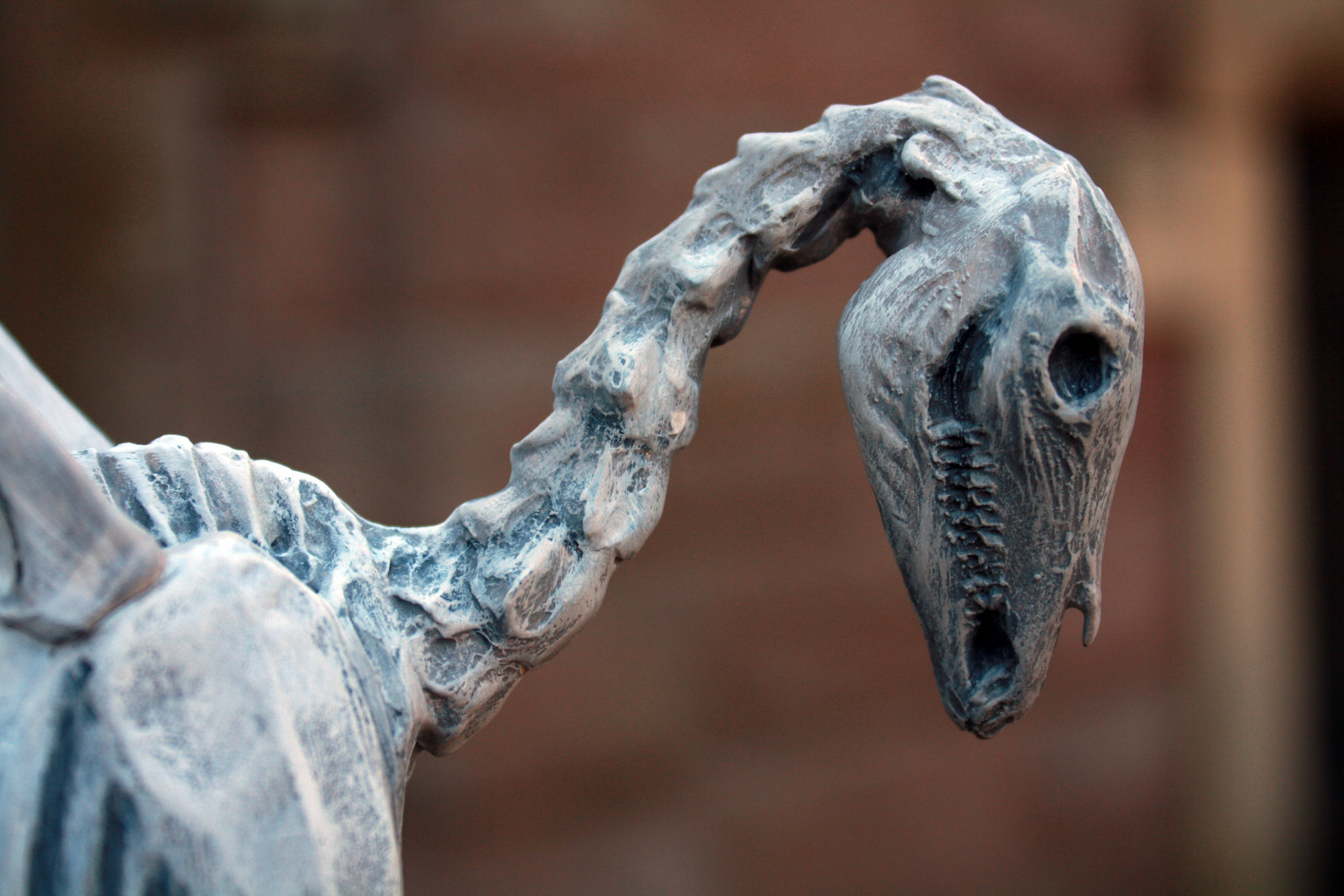 "Napoleon" pegasus skeleton, created in polymer clay and epoxy putty. About 12 inches tall, created in 2016. Sold