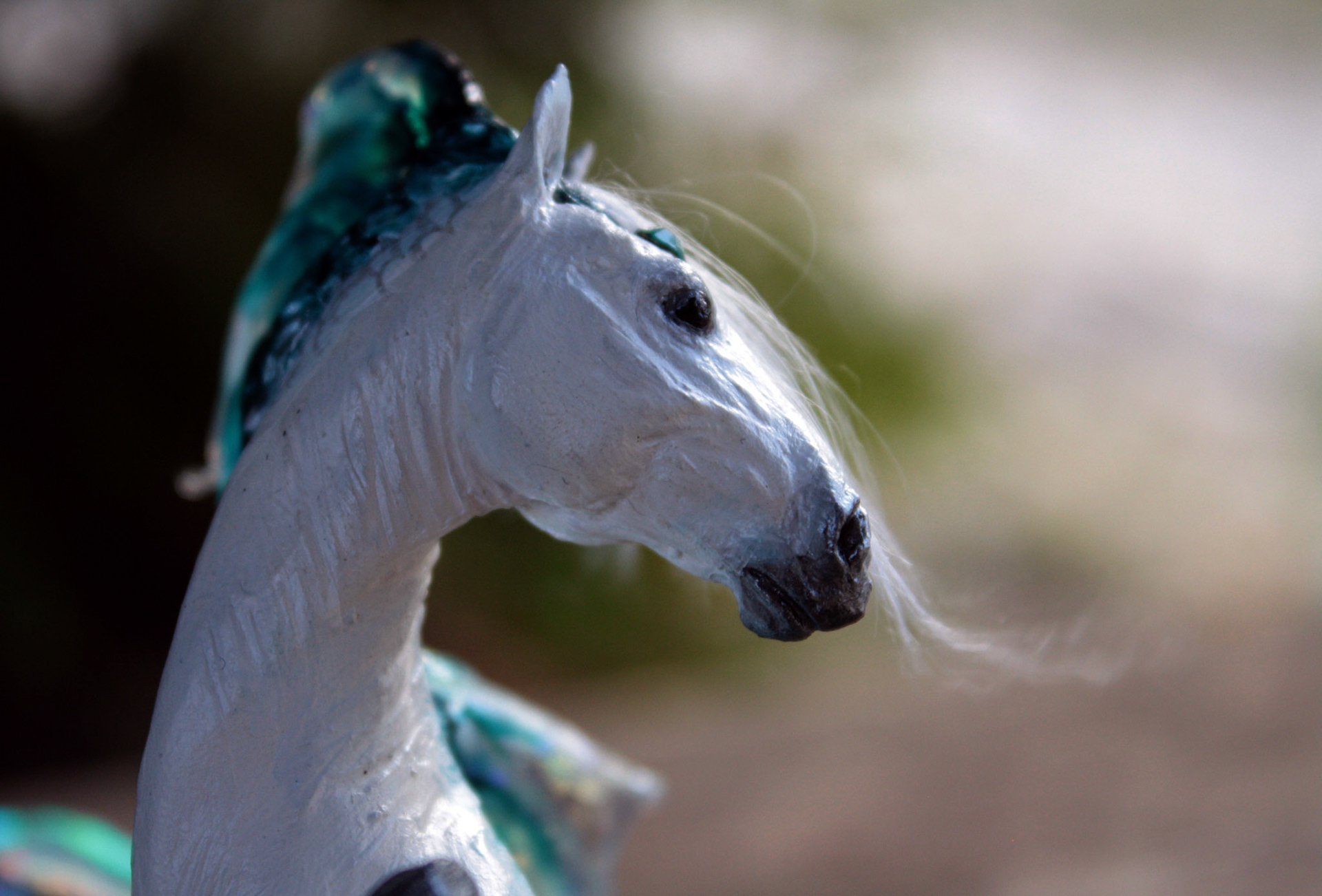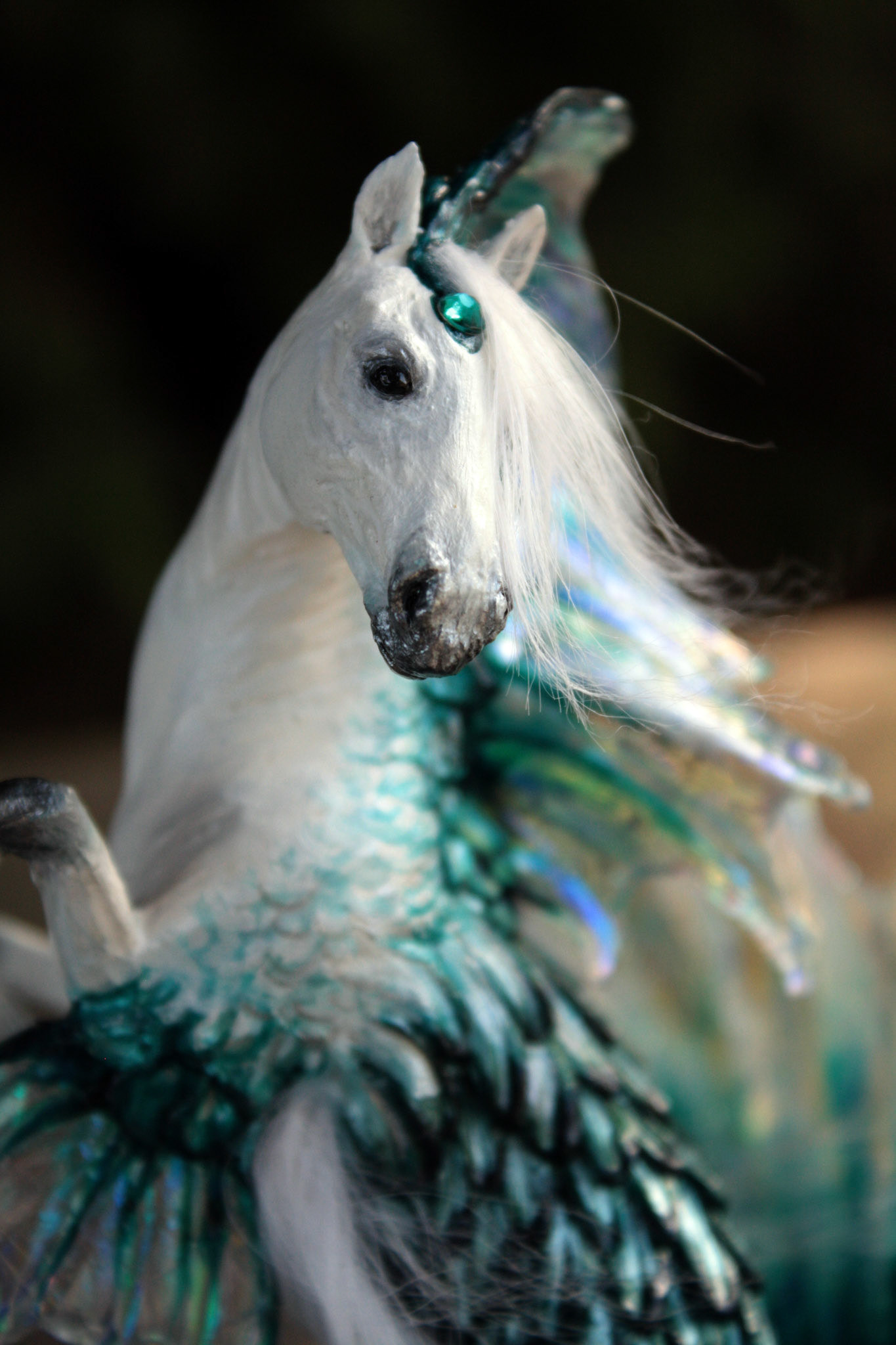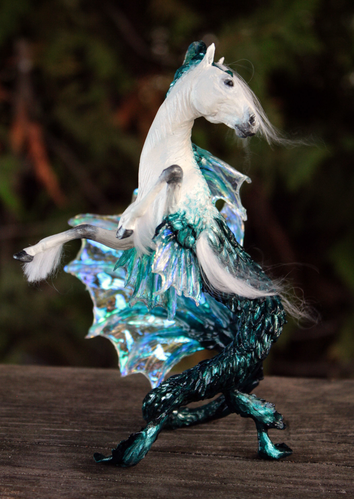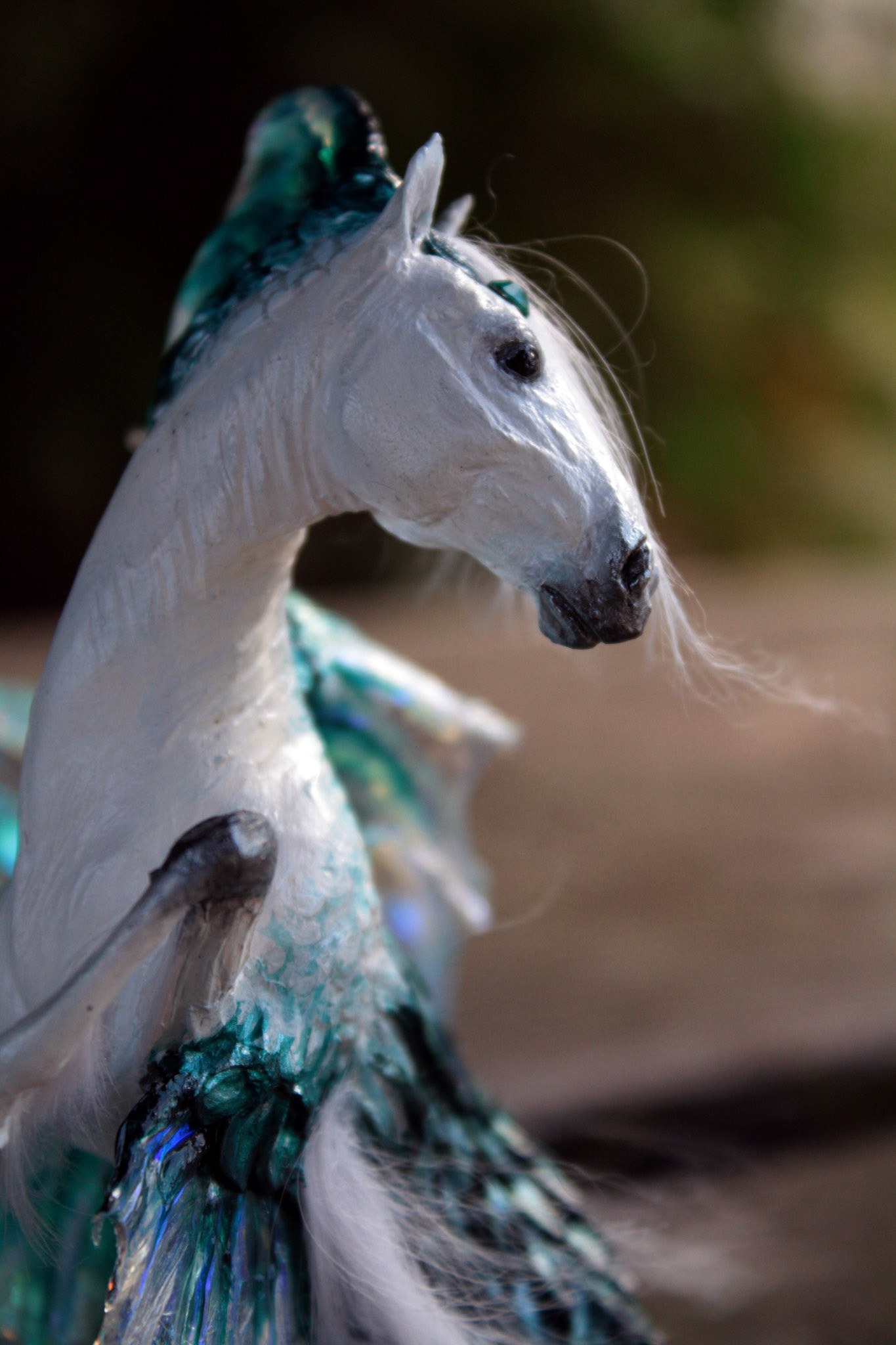 "Seraph" hippocampus fantasy sculpture, about 5 inches tall. Created in 2014 from polymer clay and fantasy film. Sold.