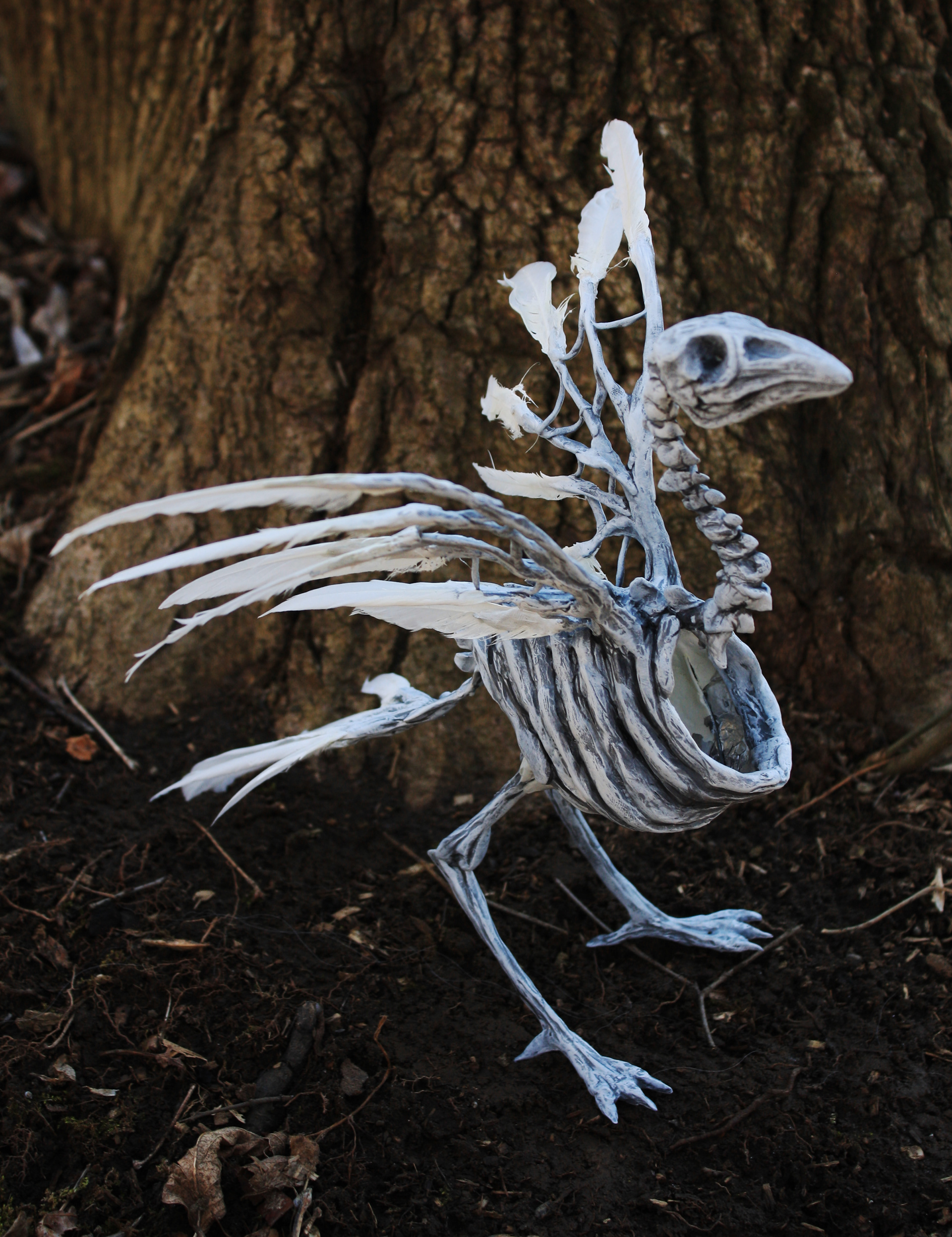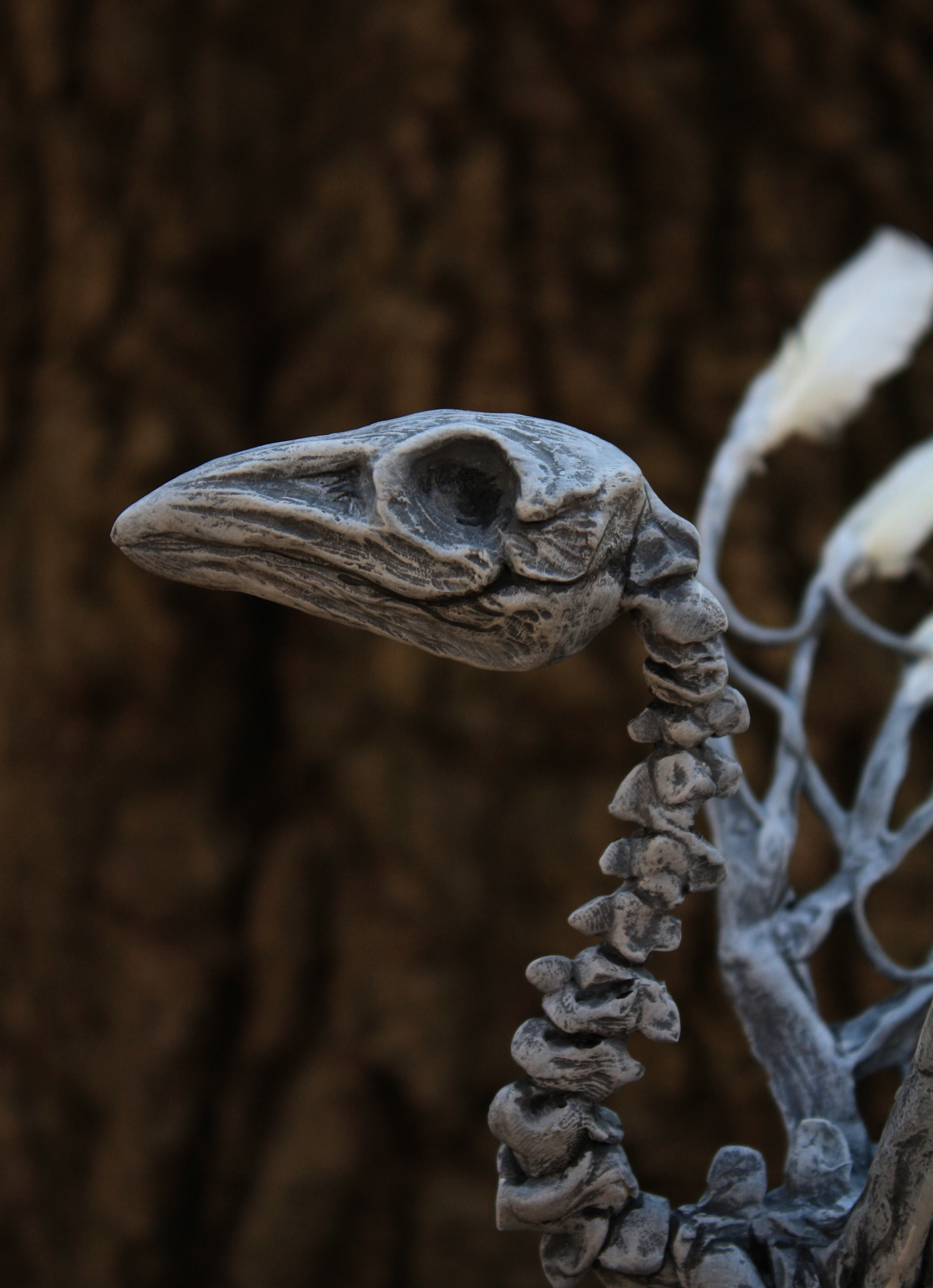 "Solas" skeleton bird sculpture, created in 2018. Made from polymer clay and epoxy putty, about 10 inches tall. One of a kind, no molds used or taken. Real feathers used. $200 USD + shipping. Shipping only, no breyerfest pick up.